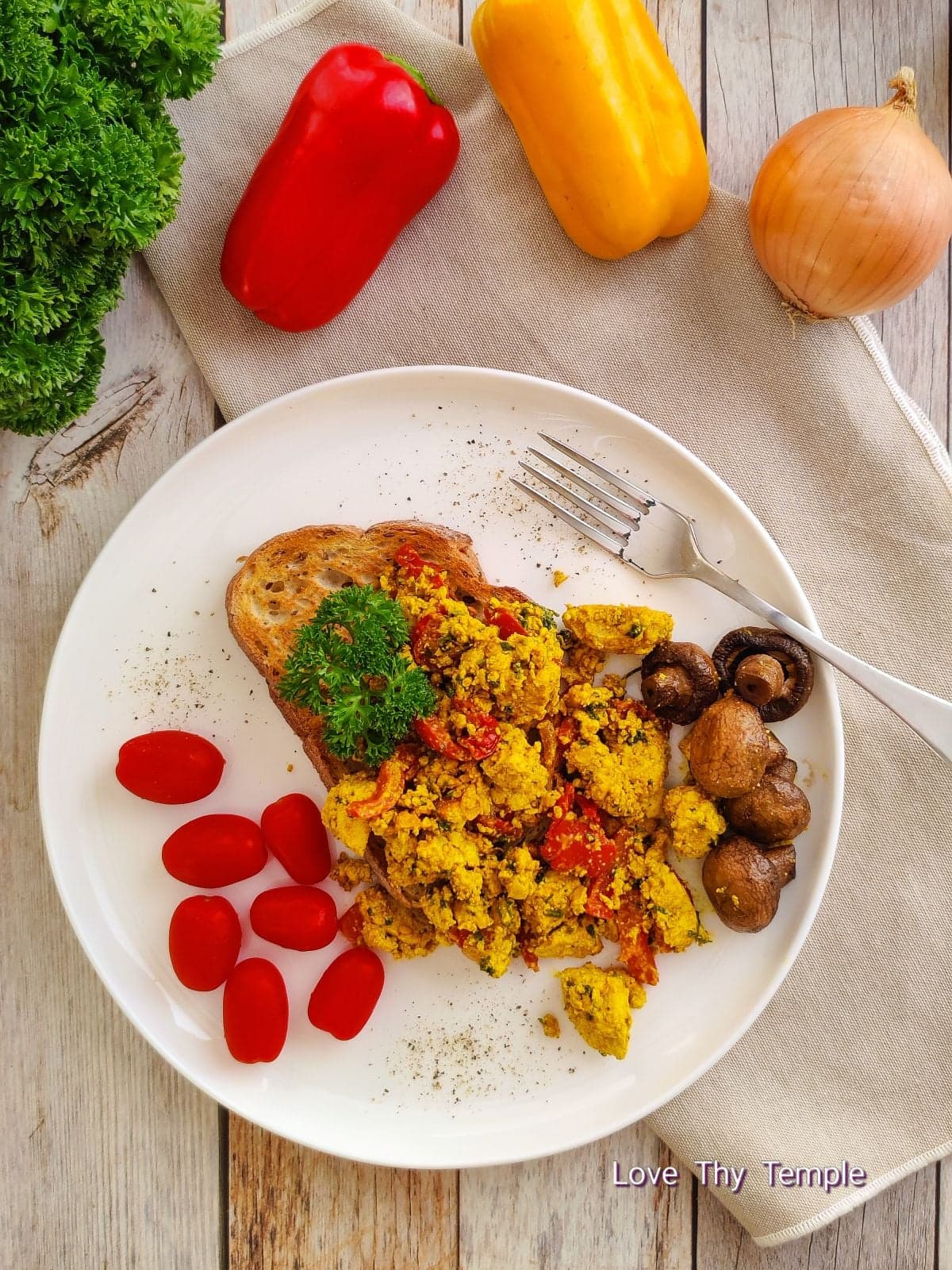 Black salt has a very strong flavour, so if you wish to make this scramble a little more eggy, I suggest increasing the amount of black salt by 1/4 tsp at a time so as not to overpower the other flavours.