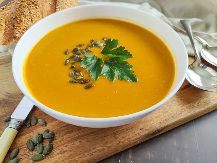 A great pumpkin soup recipe is essential to every cook's repertoire and this is my absolute favourite. Thick, creamy and lightly spiced without losing that delicious roast pumpkin flavour. This dairy-free pumpkin soup is super healthy, easy to make and will make a great addition to your table.