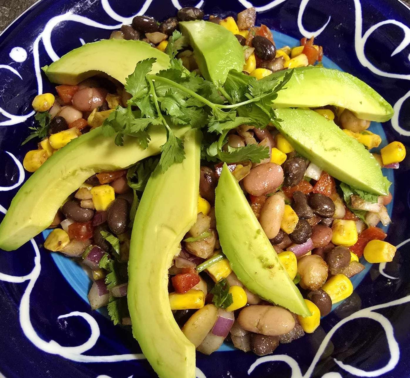 Rinse and drain the cans of beans and corn and add to a large bowl.