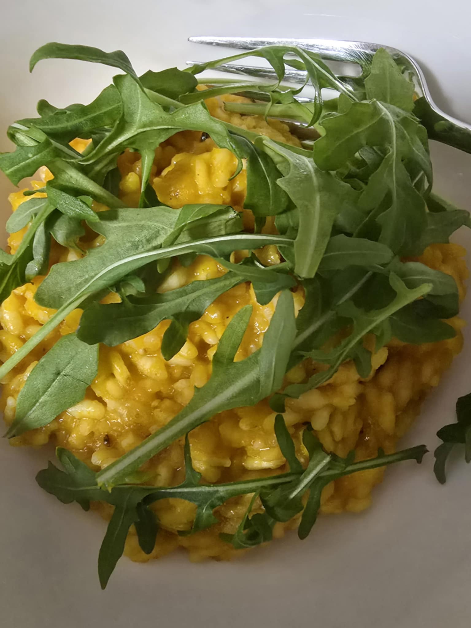 We've added rocket to our dish, as well as a nice helping of Himalayan salt and a good dose of black pepper.